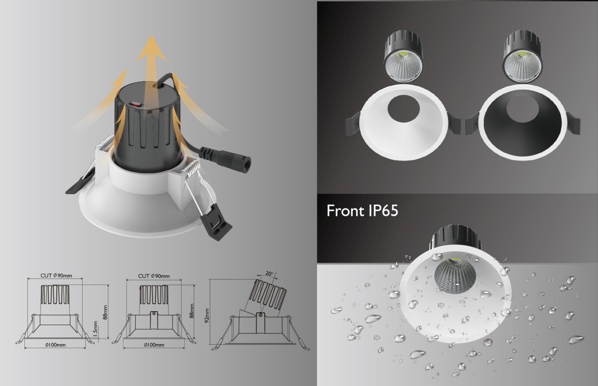 •IP Rating: Front IP65 rated for reliable protection against water and dust, making it ideal for luxury ensuites, wet areas, alfresco zones and covered outdoor living spaces; Rear IP20 rated for safe installation in standard ceiling cavities.